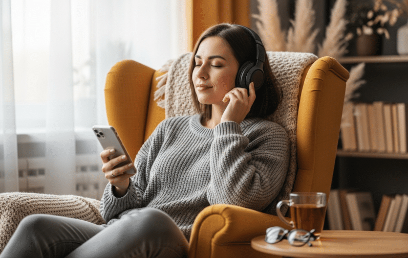 Hay algo profundamente terapéutico en escuchar una voz humana contando una historia. Los estudios demuestran que escuchar audiolibros puede reducir significativamente los niveles de cortisol, la hormona del estrés. Es meditación en movimiento, es mindfulness disfrazado de entretenimiento.